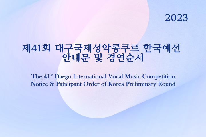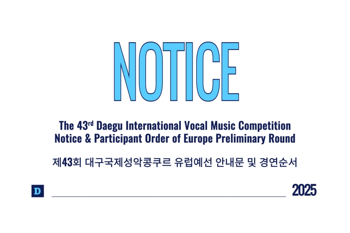 The 41st Daegu International Vocal Music Competition_Notice for European Preliminary Audition(2023 제41회 대구국제성악콩쿠르_안내문 및 경연순서)