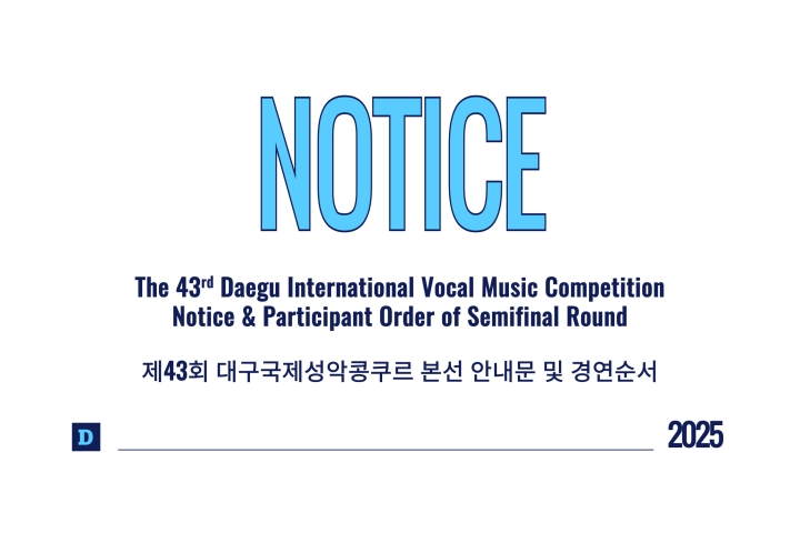 The 43rd Daegu International Vocal Music Competition Notice & Participant Order of Semifinal Round