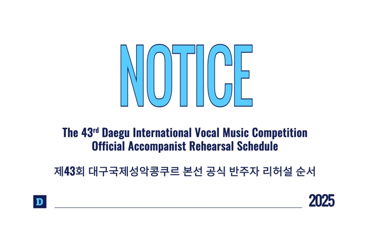 The 43rd Daegu International Vocal Music Competition Official Accompanist Rehearsal Schedule