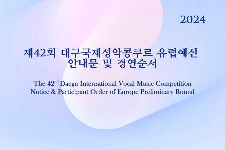 The 42nd Daegu International Vocal Music Competition_Notice&Participant Order of Europe Preliminary Round(2024 제42회 대구국제성악콩쿠르_유럽예선 안내문 및 경연순서)